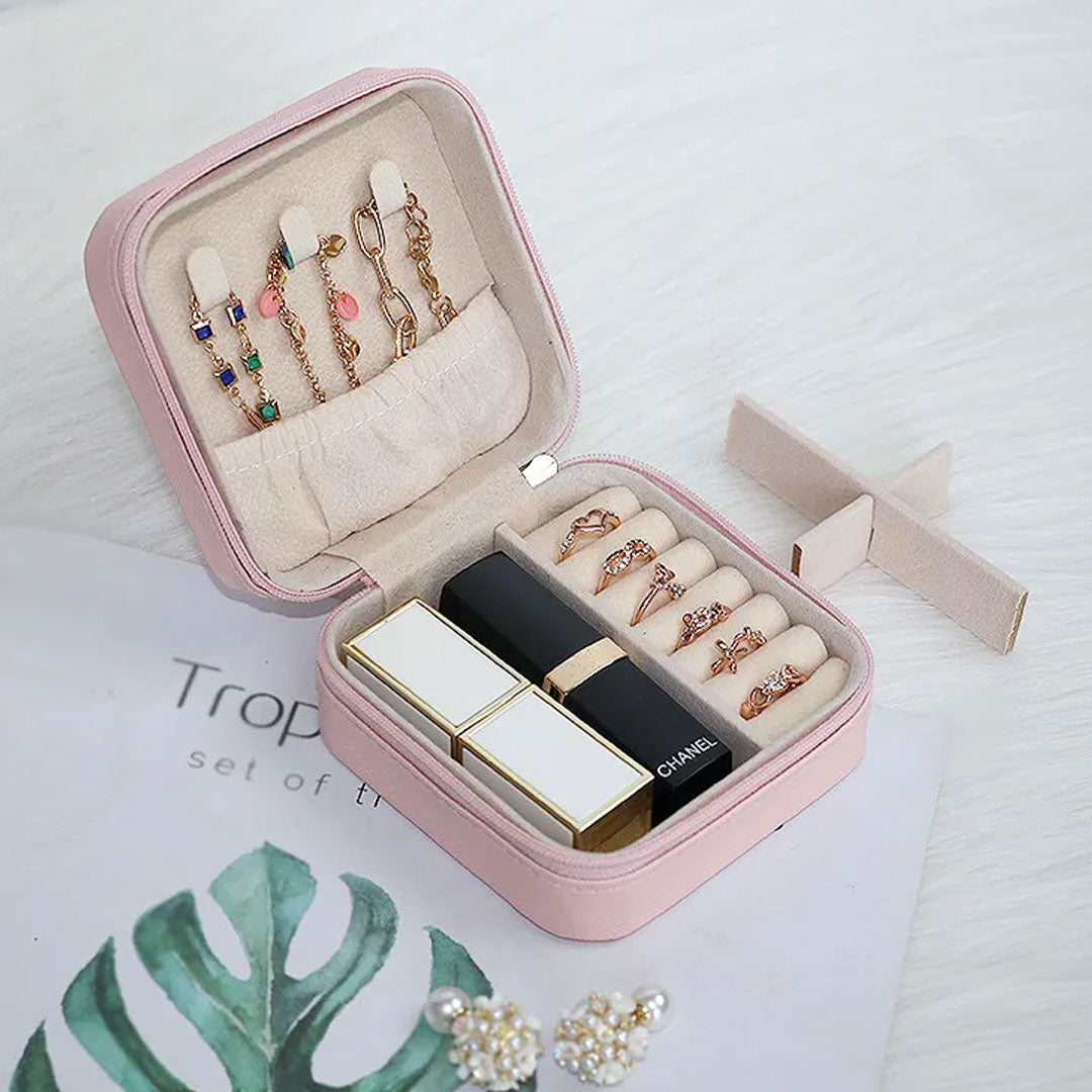Enhance your travel experience with our jewelry travel case. Designed to organize and protect your most precious jewelry, this compact case promises a smooth trip. With dedicated spaces for rings, necklaces and earrings, every piece finds its place. Because your jewelry deserves a first-class travel experience too. ✈️💍.